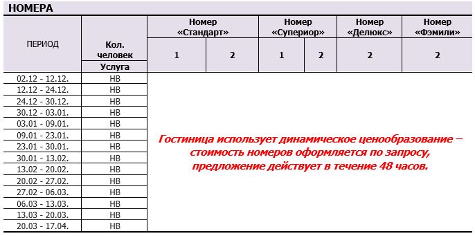 - Мин. кол-ство человек для бронирования номеров «Дэлюкс» и «Фэмили» – 3 человека