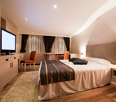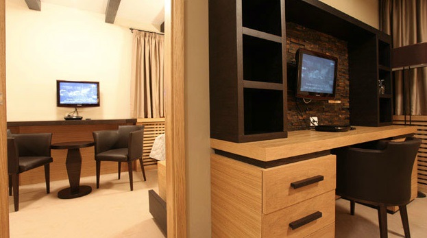 Спальня с двуспальной кроватью (200x160), гостиная с угловым/раскладным диваном, письменный стол, ванная с душевой/ванной и туалетом, 2 ЖК-телевизораСьют «Экзекьютив» 1/4