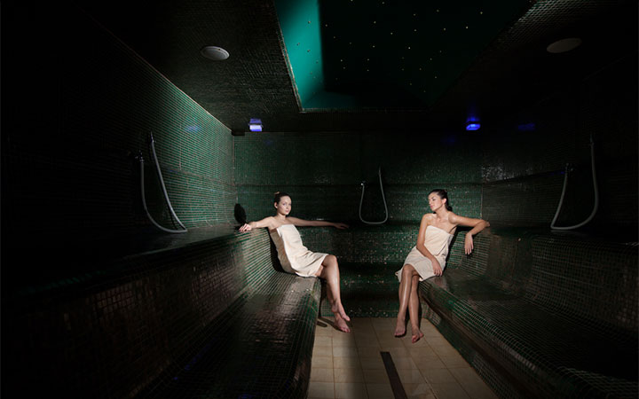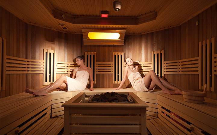 крытый бассейн (18x9m), гардеробная (шкафчик, махровые халаты, тапочки, полотенца), инфракрасная сауна, финская сауна, русская баня, турецкая баня, ароматическая паровая баня, соляная комната, Кнейп-терапия, тепидарий, тропический душ, бассейн и джакузи с подогревом нa свежем воздухе, массаж, вип-спа салон (джакузи, частная сауна, массаж, уход за телом и лицом)Фитнес-центр: