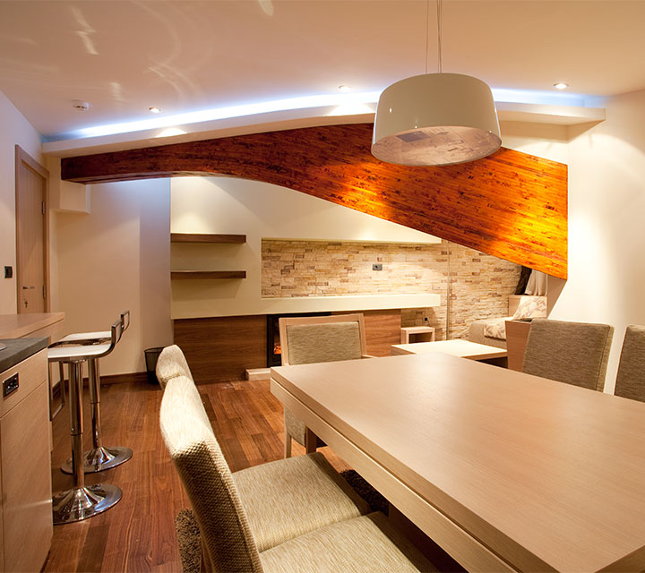 Общая площадь 72 м2, спальня с двуспальной кроватью (200x190), спальня с двуспальной кроватью (200x160), гостиная с угловым мебельным гарнитуром, обеденный стол с шестью стульями, кухня с барной стойкой и стульями, письменный стол, 3 ЖК-телевизора, 2 ванные комнаты с душевой, ванной и туалетом, набор косметики для ухода за телом и лицом классы люкс.