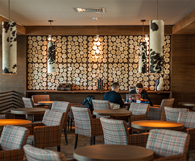 ИНФРАСТРУКТУРА Ресторан «Гранд» Ресторан ««Форест» с камином Ресторан-пиццерия «Гарден» Пул-бар Конгресс-центр «МК Маунтин Ресорт» (2 800 м2) со всем необходимым аудио- и видеооборудованием: