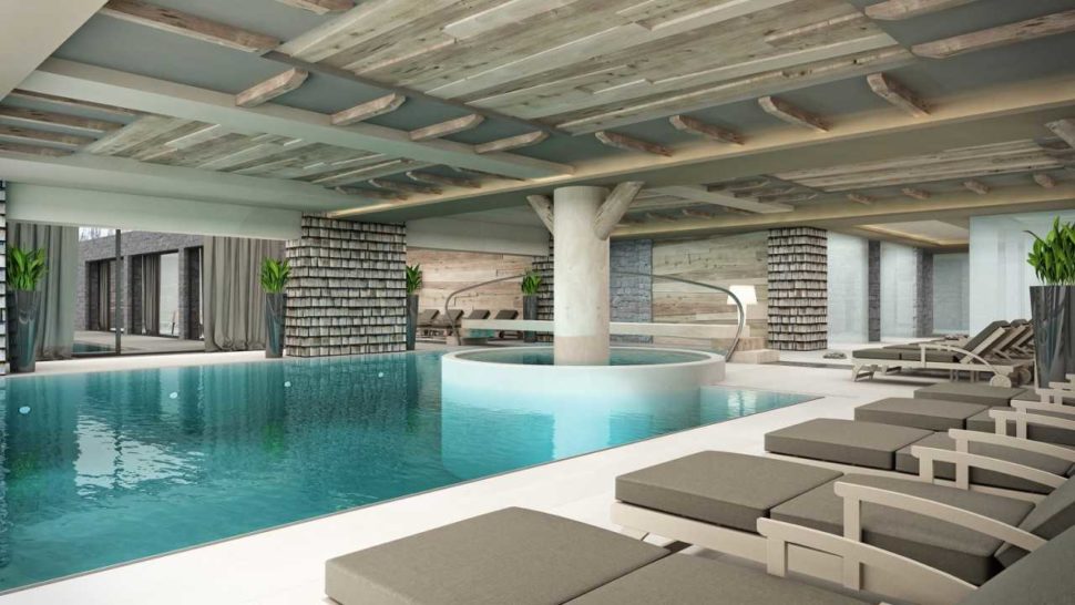 крытый бассейн, открытый бассейн с подогревом, джакузи, сосновая баня, баня на сене, финская сауна, паровая баня, душ впечатлений, дорожка Кнейпа, ледяной фонтан, ледяной душ, соляная комната, тепидарий, зона отдыхаФитнес-центр Детская игровая комната Парикмахерская Салон красоты Лыжное хранилище Гараж - ski-in / ski-out